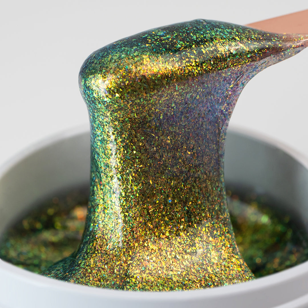 • Gamă de culori delicate, cu o cantitate mare de sclipici holografic și aspect translucid;