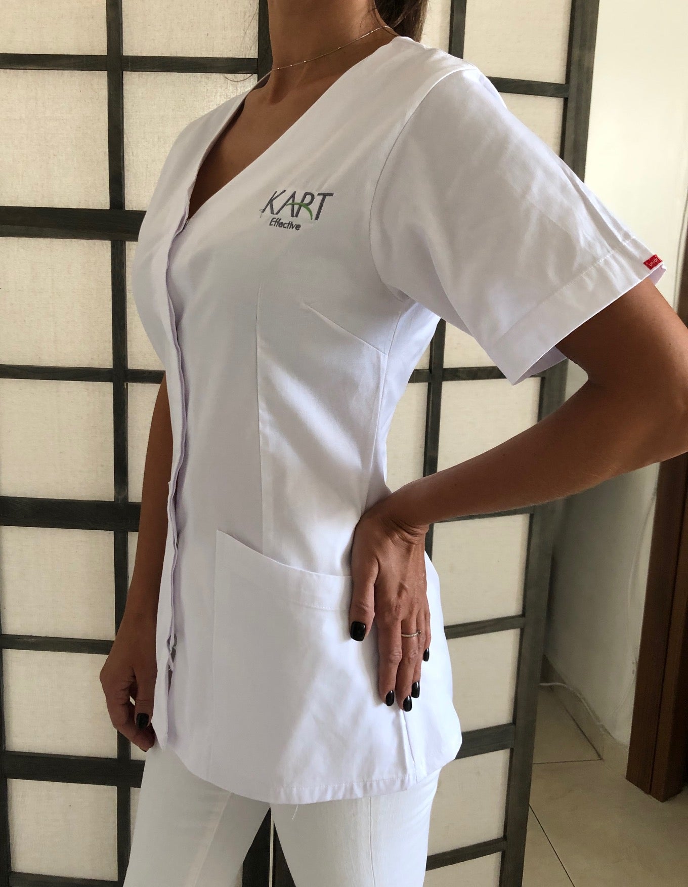 Halat confortabil și practic pentru tehnicienii de manichiură și pedichiură, cu logo-ul KART.