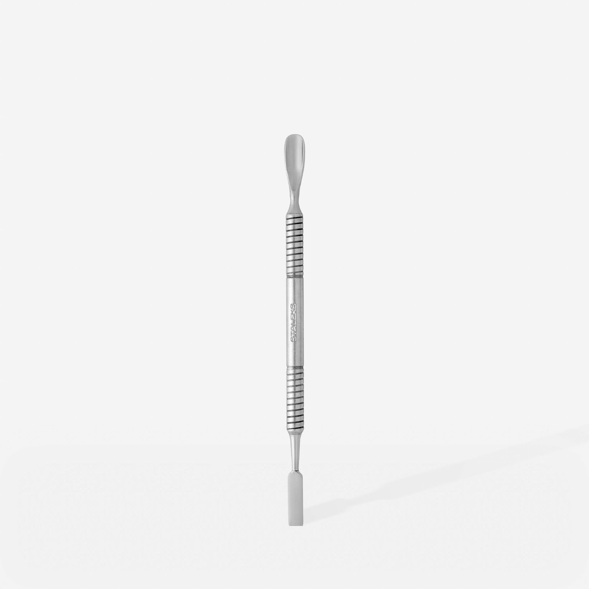 Pusherul este utilizat pentru a împinge cuticula și pentru a îndepărta resturile de cuticulă în timpul procedurii de pedichiură.Acesta are suprafață nichelată, mâner reiat, ce dispune de o formă ergonomică care facilitează uzul intens.