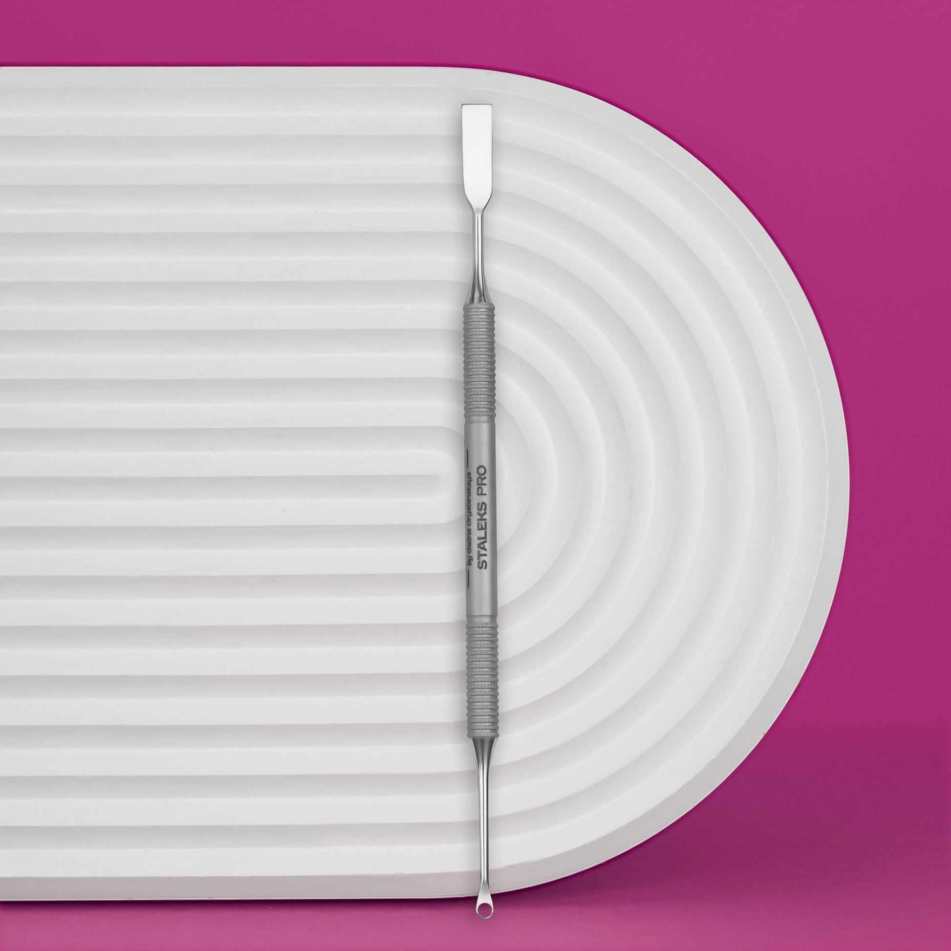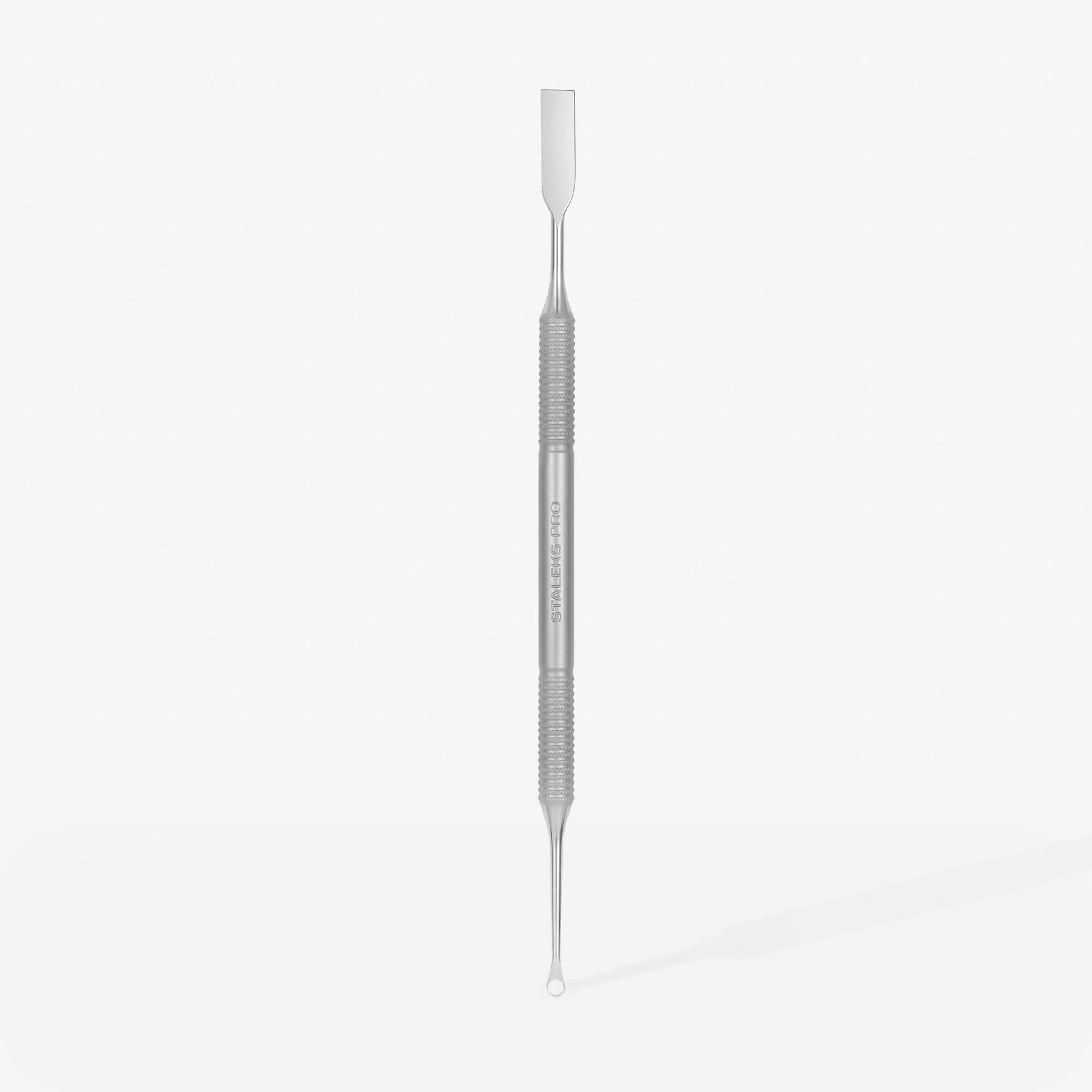 Pusherul este format din 2 capete diferite. Partea funcțională a „Pusherului rotunjit cu un capăt drept” este concepută pentru a ridica și împinge înapoi cuticula. Celălalt capăt, „securea” curăță resturile de cuticulă.