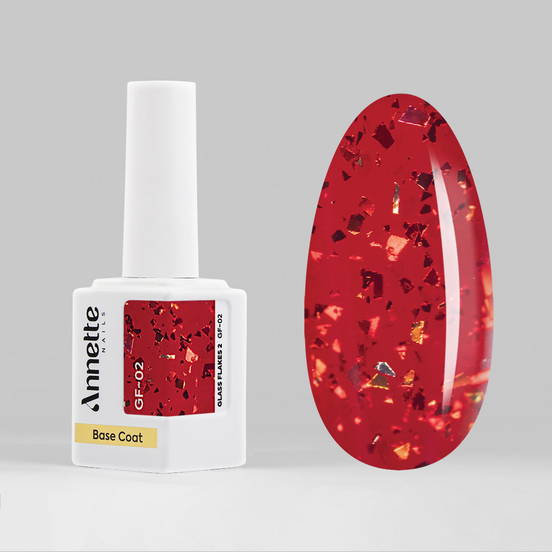 Colecția de baze rubber Glass Flakes Annette Nails este compusă din 6 baze autonivelante, cu fulgi aurii de diverse mărimi și consistență translucidă. Datorită dimensiunilor fulgilor aurii și spațierii dintre ei, bazele creează un efect de adâncime 3D, redând o strălucire uniformă a fulgilor, indiferent de unghiul din care este privită unghia. Bazele sunt ideale pentru realizarea manichiurilor monocromatice cu accente elegante și delicate și sunt perfecte pentru utilizarea în cazul unor ocazii speciale.
