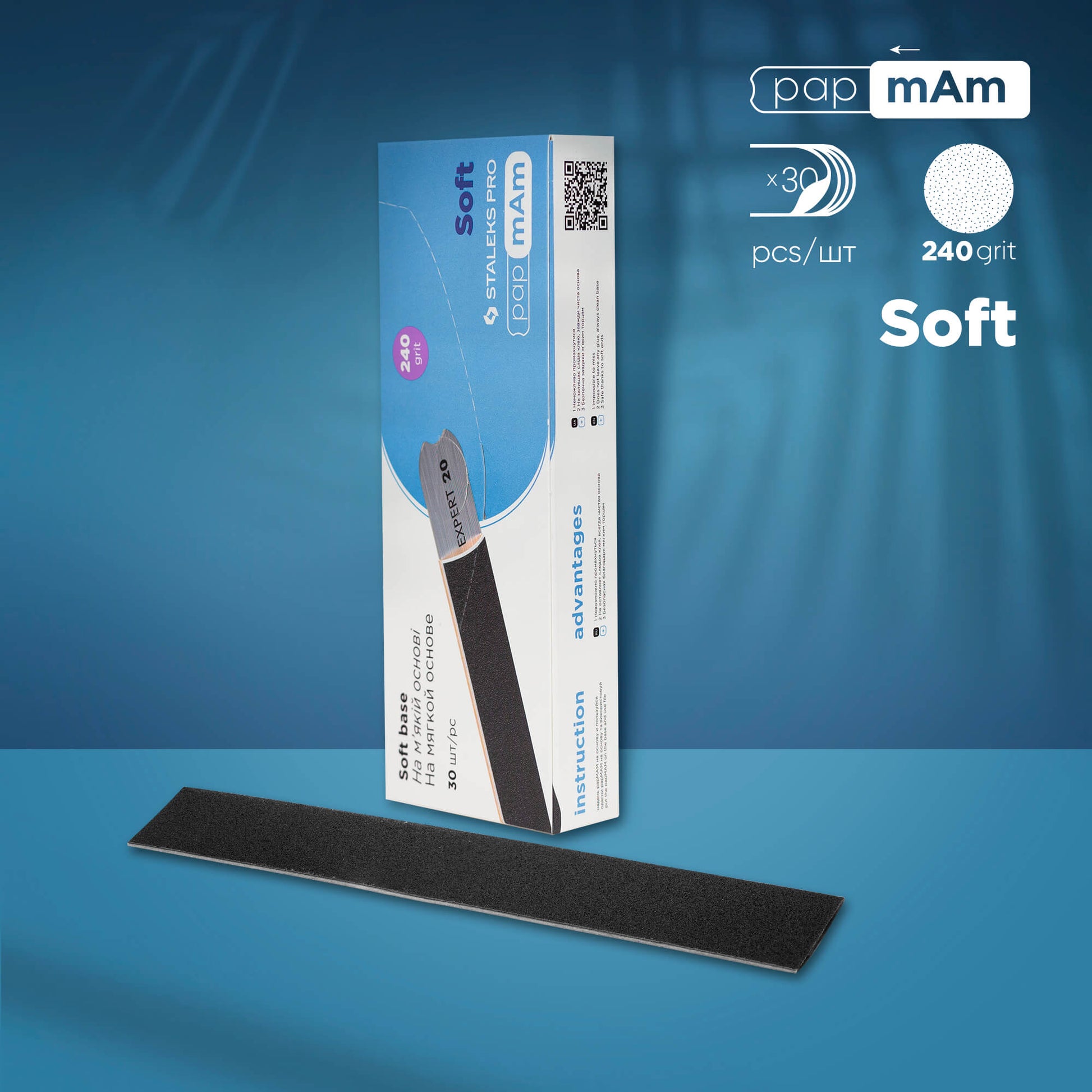 Tehnologia papmAm a fost inventată și patentată de Staleks. Rezerva se pune pe bază ca un capac și se închide complet pe ambele părți. Caracteristica lor principală sunt vârfurile moi care protejează pielea clientului de tăieturi. papmAm este fixat strâns pe bază și poate fi îndepărtat cu ușurință de pe ea, ca urmare, obținem un instrument curat după lucru, fără reziduuri de lipici.Seria Expert Black - culoare neagra - carbura de siliciu, este recomandată pentru pilirea unghiilor naturale sau lucrul cu lac cu gel. Abrazivul posedă capacitatea de a se ascuți automat în timpul lucrului astfel că, fără efort, va da orice formă unghiilor clientei.