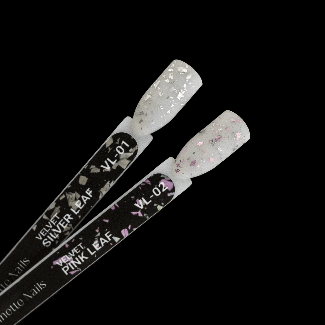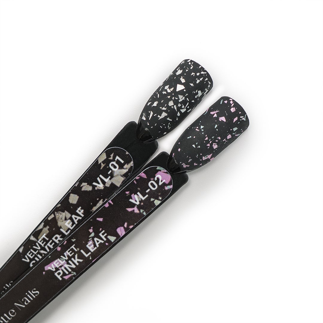 Velvet pink leaf no wipe - este un Top Mat decorativ, fără strat de dispersie, ce conține particule de folie metalică roz și verde. Este opțiunea perfectă pentru a obține o manichiură de efect în cel mai scurt timp. Se poate aplica, atât pe nuanțe închise, cât și pe nuanțe deschise. Conferă unghiilor un efect de catifea, foarte plăcut la atingere. Are o consistență medie, spre lichidă, se autonivelează rapid în procesul aplicării, suprafața nu rămâne denivelată. Își păstrează efectul mat pe toată durata purtării manichiurii. Datorită texturii, suprafața rămâne curată timp îndelungat. Pe culorile deschise, la nevoie, se recomandă curățarea unghiilor cu apă micelară pentru a îndepărta eventualele impurități.
